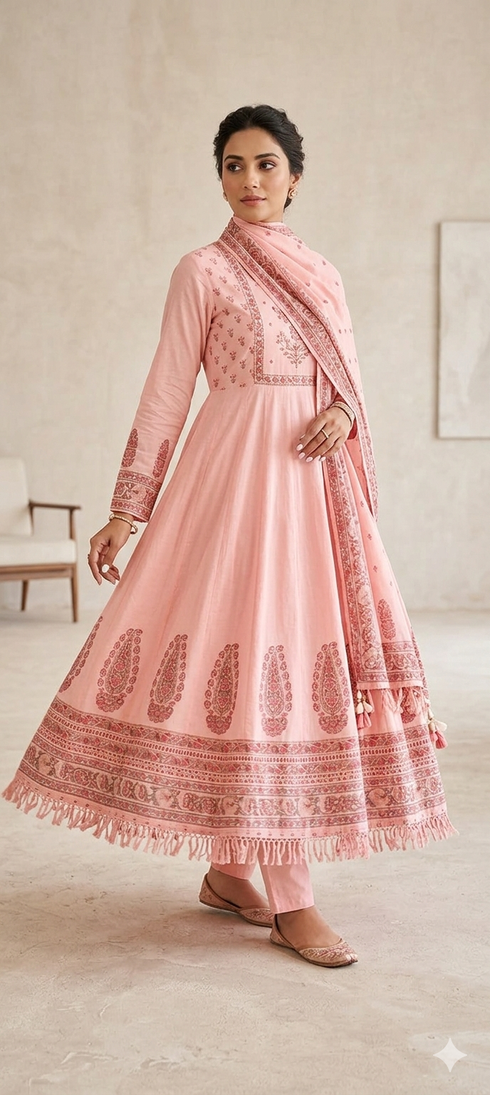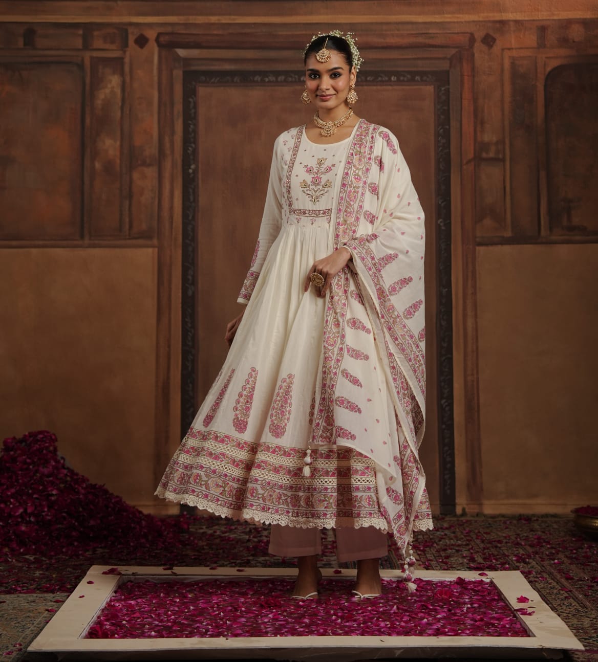 Ridhiema Tiwari Wearing sushila's Heavy embroidered anarkali kurti with Pink Dupatta