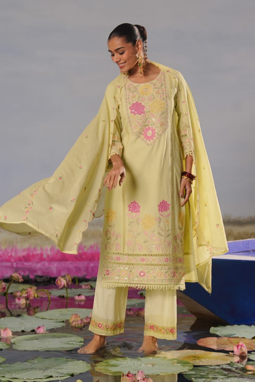 Bharti Singh Wearing Phulwaari Yellow Floral printed 3/4 sleeves kurta