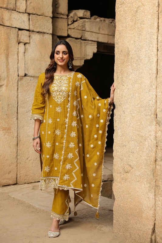 EMBROIDERY KURTA PANT DUPATTA J11169