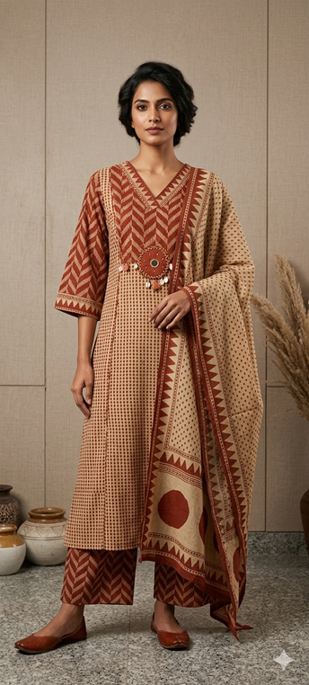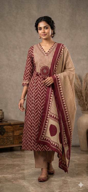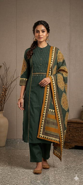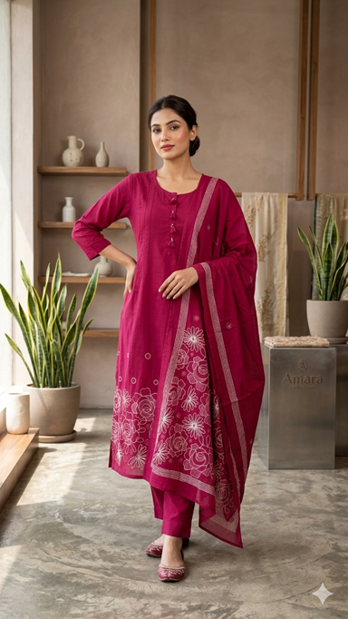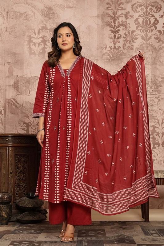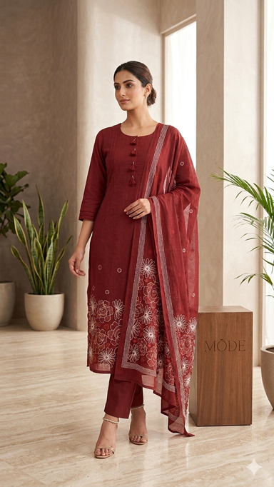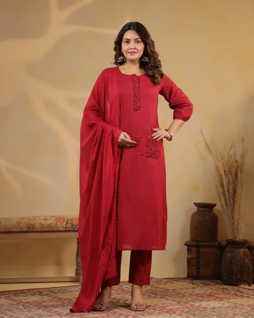 EMBROIDERY KURTA PANT DUPATTA J113660