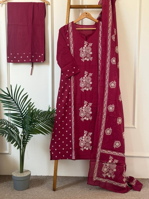 EMBROIDERY KURTI PANT DUPATTA J118479